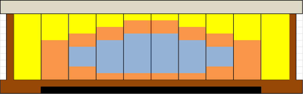 C’est le domaine privé des abeilles et de leur Reine. Tout ce qui est entreposé dans le corps appartient aux abeilles. Il peut être représenté graphiquement comme le schéma ci-dessous :